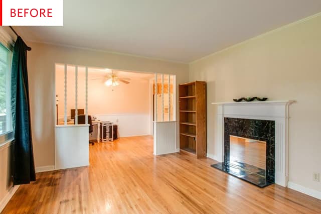 via Before and After: One Designer Trick Makes All the Difference in This Living Room